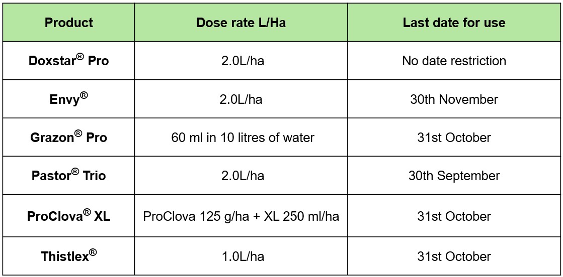 As day length reduces and temperatures drop, active growth will slow down. In response to these changes, consideration must be made when choosing to make a recommendation or when undertaking an application. Further to this, be aware of the cut-off dates for application.